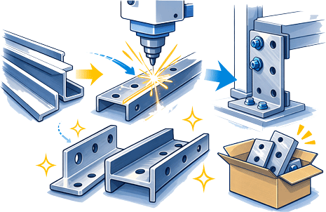 アングルやチャンネルをボルト締めしやすい状態で揃え、 板金部品とまとめて手配しやすくします。