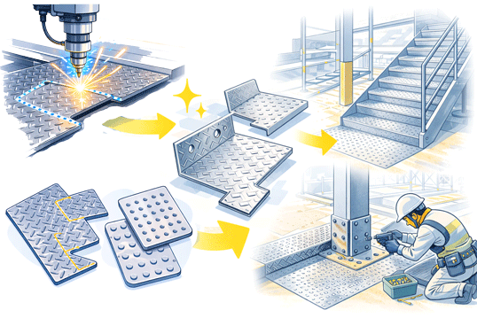 縞板・ポルカプレートの加工(床材・滑り止め)